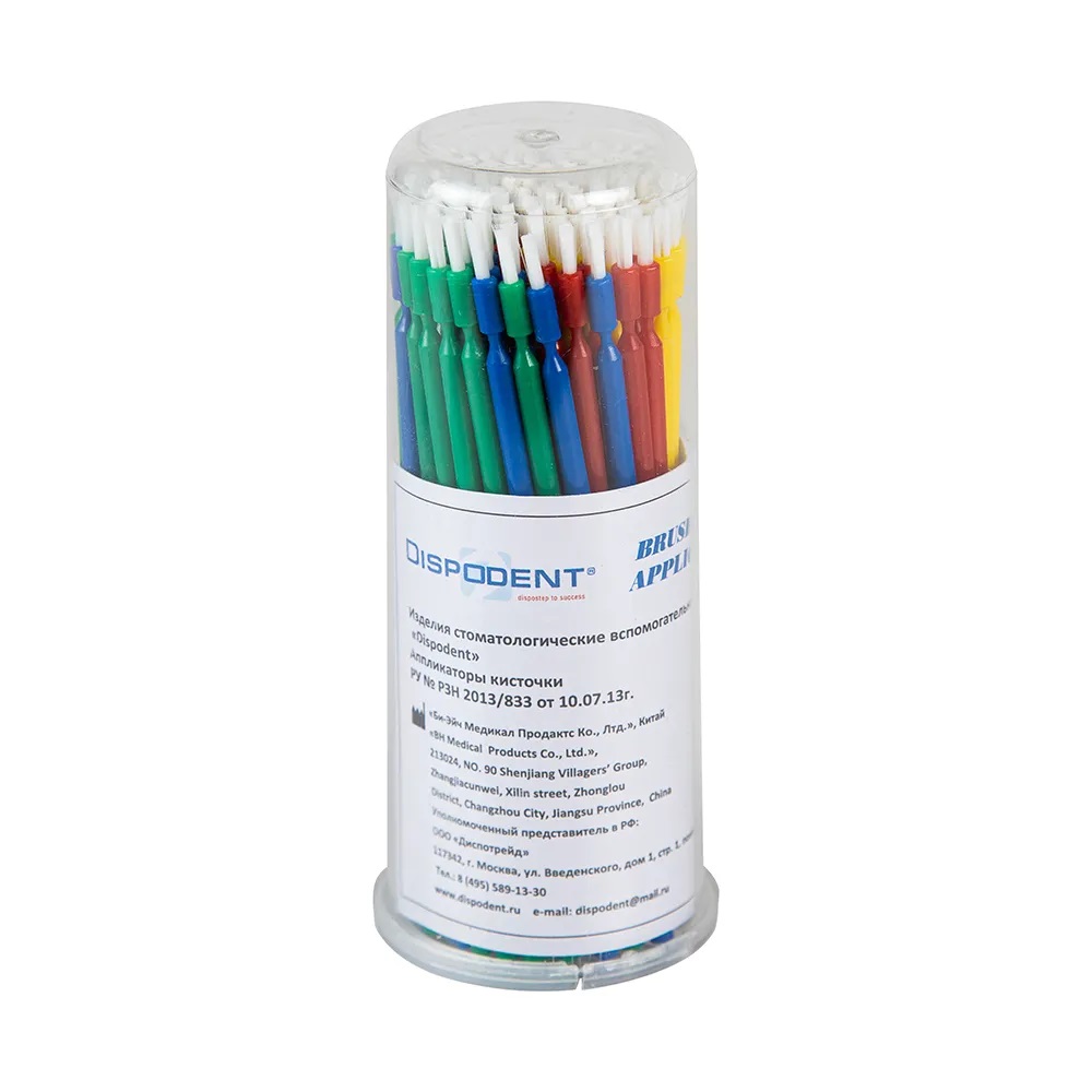 Кисточки-аппликаторы, цветные, Дисподент 100 шт,