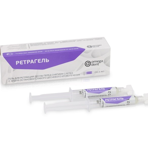 Ретрагель, гель для ретракции десны, кровоостанавл., дезинфец., вяжущее шпр 2*2,5 мл, Омега