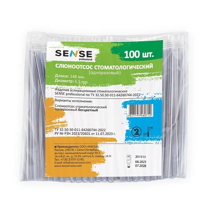 Слюноотсосы, 15см, 100 шт, SENSE, прозрачные, Спидент