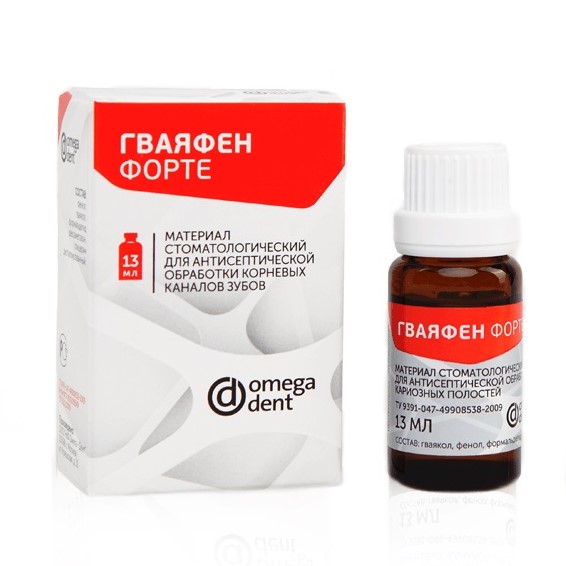 Гваяфен форте жид-ть, обработка кариозных полостей (фенол, формальдегид, дексаметазон), 13 мл, Омега