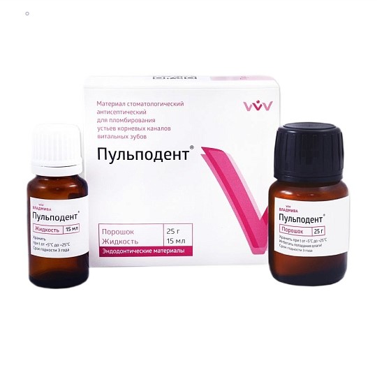 Пульподент постоянное пломбирование инфицированных каналов, порошок 25гр+жидк 15мл, Владмива
