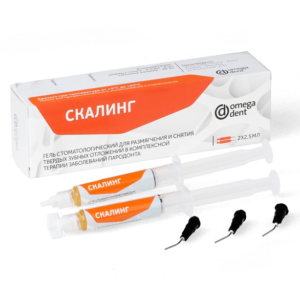 Скалинг гель, для размягчения и снятия твёрдых зубных отложений шпр 2*2,5 гр, Омега