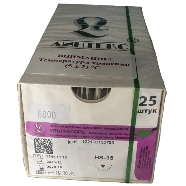 Шовный Линтекс УЛЬТРАСОРБ HS 15, 5-0 UPS, 75см, 25 шт.