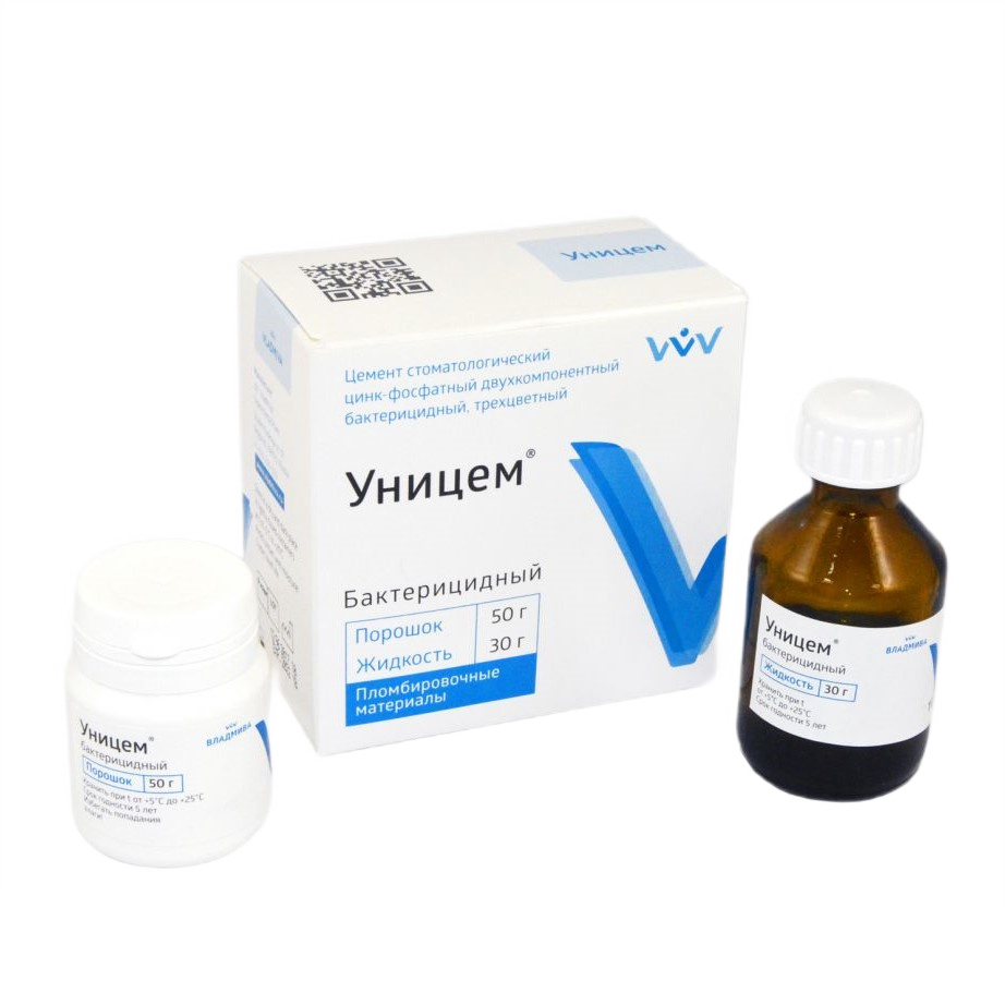 УНИЦЕМ Бактерицидный цинк-фосфатный цемент +Серебро 50 г + 30 г, Владмива