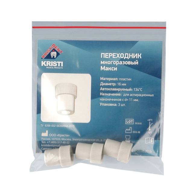 Переходник «Макси»/ø16 мм: для аспирационных наконечников с ø11 мм. 3шт., КристиДент