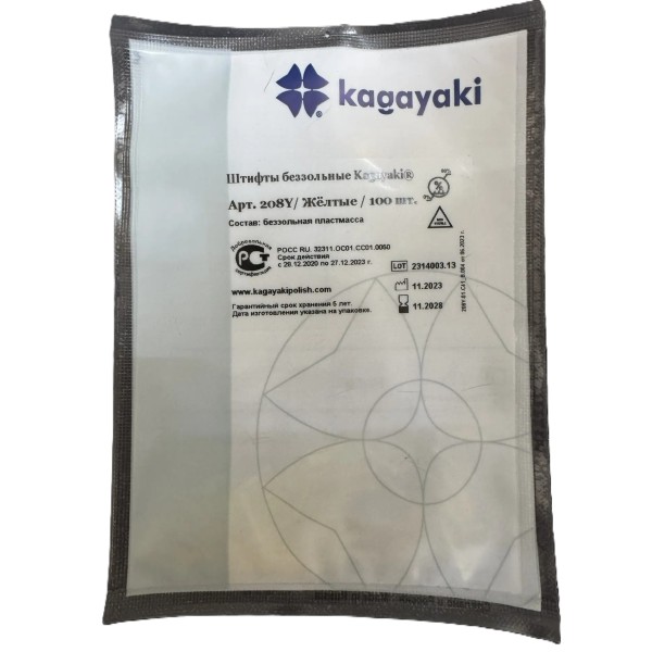 Штифты беззольные №208(желтые), 100шт, Кагаяки