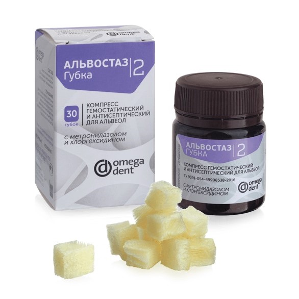 Альвостаз №2 с Хлоргексидином и Метронидазолом, Губка гемостат. и антисепт., 30 шт, Омега